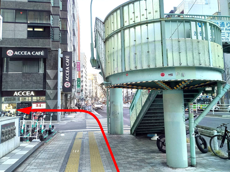 スロープ右側、渋谷警察署横 にある階段を下ります。