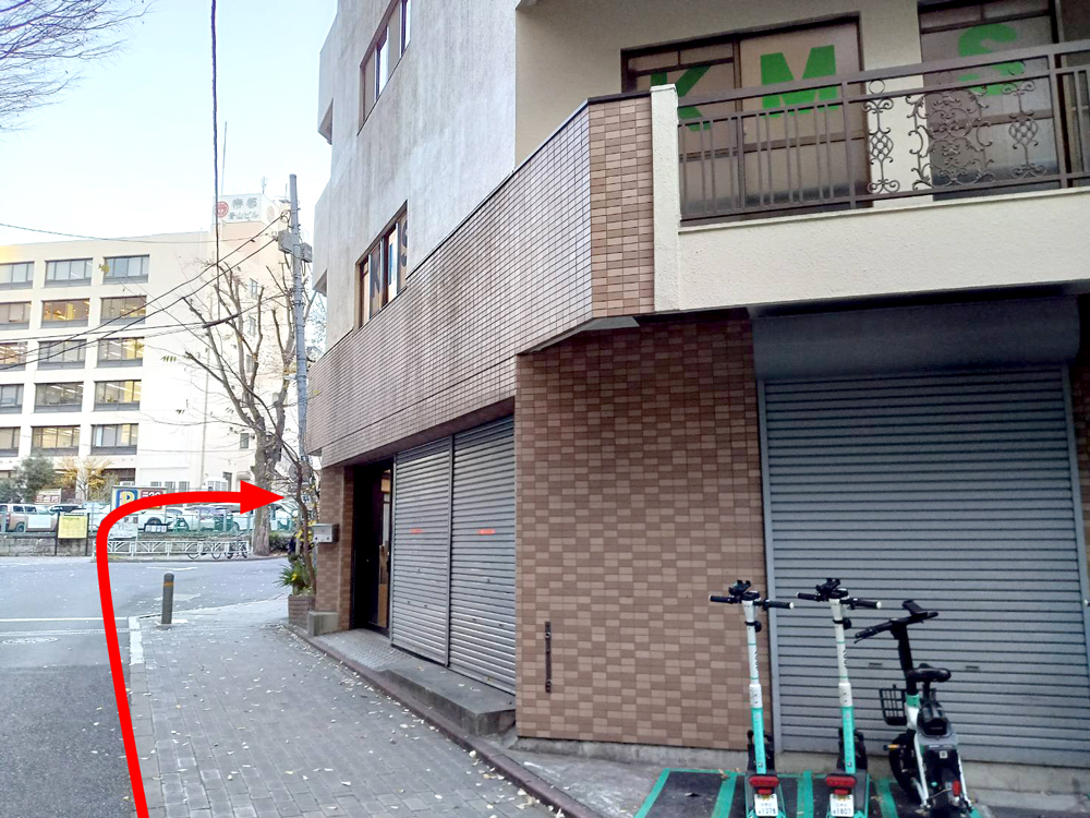 高速道路の下を通り抜け、渋谷警察署の建物に向かいます。